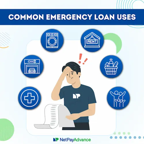 Unexpected expenses can be inconvenient or a financial dilemma. These “dilemma” expenses are what we’re referring to when discussing emergency loans. They’re costs that appear out of nowhere that can’t be covered without borrowing money. Common examples include medical bills, car repairs, and family emergencies.